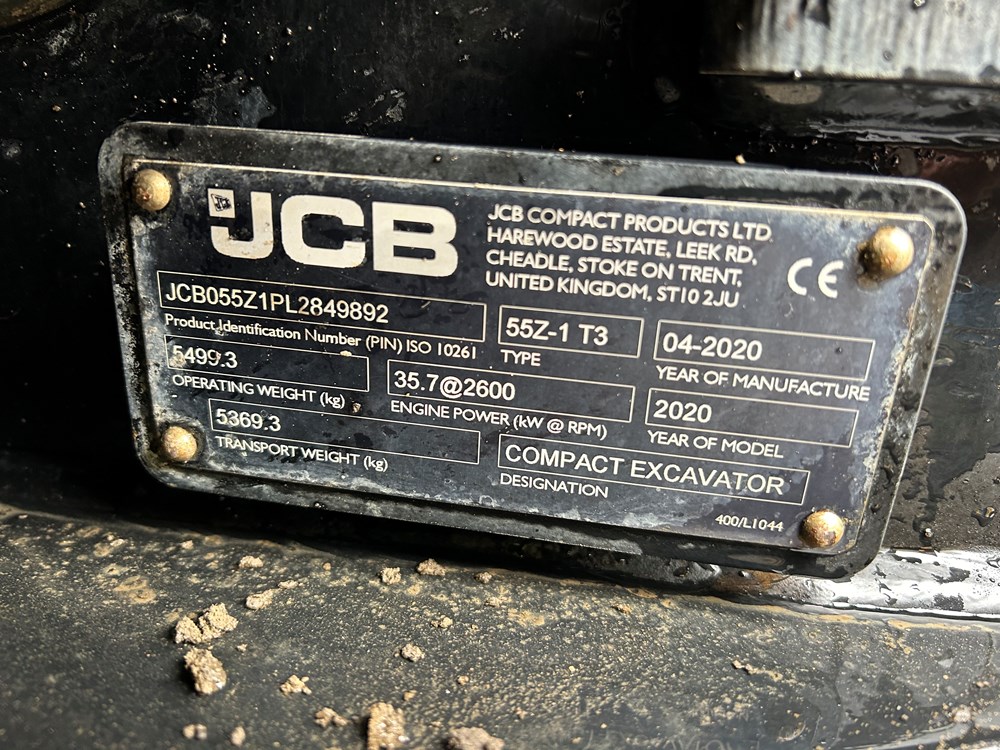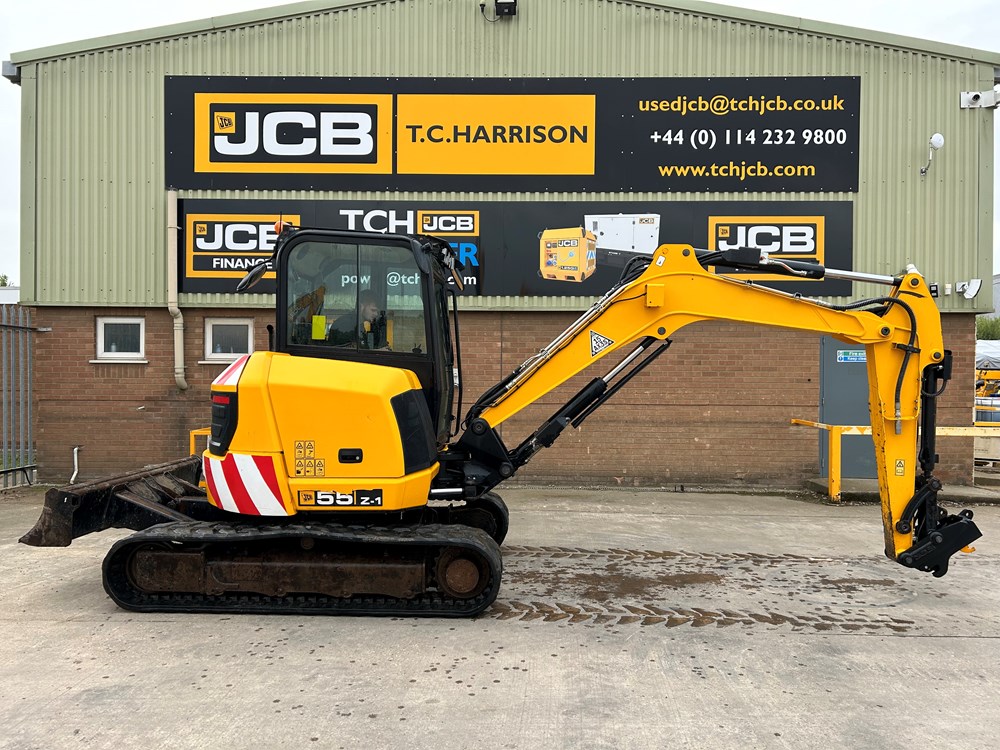 ***CONSIGNED TO TCH JCB AUCTION, START PRICE £24,750 - VISIT www.tchjcbauction.com NOW FOR MORE INFO, TO REGISTER & BID, AUCTION ENDS FROM 12:00 GMT ON MONDAY 21ST OCTOBER 2024, NO BUYERS FEES, WHAT YOU BID IS WHAT YOU PAY, NO DEPOSIT REQUIRED, THE START PRICE IS THE RESERVE PRICE*** JCB 55Z-1 MIDI EXCAVATOR - CAB WITH AIR CONDITIONING, RUBBER TRACKS, ISO CONTROL PATTERN, HIGH FLOW DOUBLE ACTING AUX, HIGH BACK FABRIC AIR SUSPENSION & HEATED SEAT WITH HEADREST, 1570MM DIPPER, STANDARD DOZER BLADE, LED WORKLIGHTS, BUSHED KINGPOST, NEW HYDRAULIC QUICK HITCH, DOZER, BOOM & DIPPER HBCV - LOCATION: TCH JCB LINCOLN