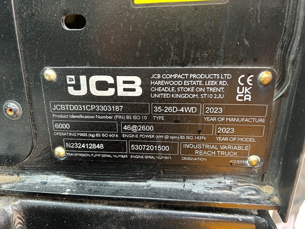 JCB TLT35-26D-4WD TELETRUK - NEW & UNUSED, 27x10x12 FOAM FILLED TRACTION TYRES, LOW HEIGHT COMMAND PLUS PARTIAL CAB, 2 X AUXILIARY @ 70LPM FLOW, 1200MM CLASS 3B PALLET FORKS, VINYL SEAT, WHITE NOISE REVERSE ALARM, QUICK RELEASE COUPLINGS WITH CHANGEOVER VALVE, LOAD GUARD, QUICK DISCONNECT SIDESHIFT, WHEEL PROTECTION KIT - LOCATION: TCH JCB CHAPELTOWN