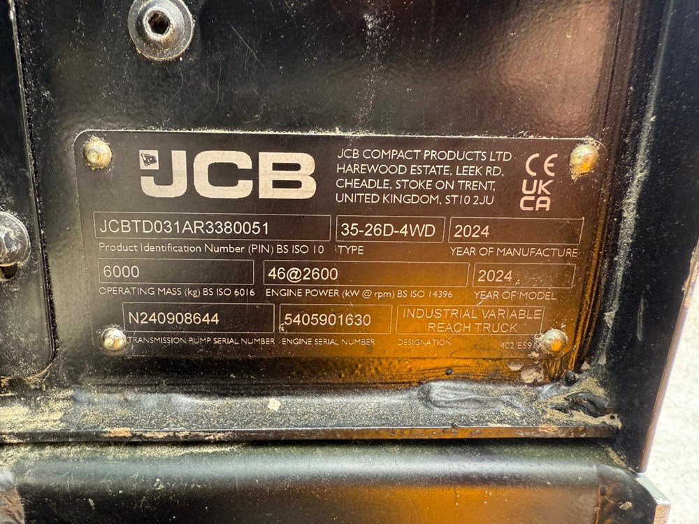 JCB TLT 35-26D-4WD TELETRUK - LOW HEIGHT COMMAND PLUS FULL CAB, 2 X AUXILIARY @ 70LPM FLOW, VINYL SEAT, RADIO INSTALLATION KIT (RADIO NOT INCLUDED), OVERHEAD ROOF GUARD, WHITE NOISE REVERSE ALARM, CARRIAGE TILT ON JOYSTICK, EXTEND / RETRACT ON ROLLER, FULLY RESPRAYED, FULL TCH JCB SERVICE HISTORY, LAST SERVICED AT 2981 HOURS - LOCATION: TCH JCB ALFRETON