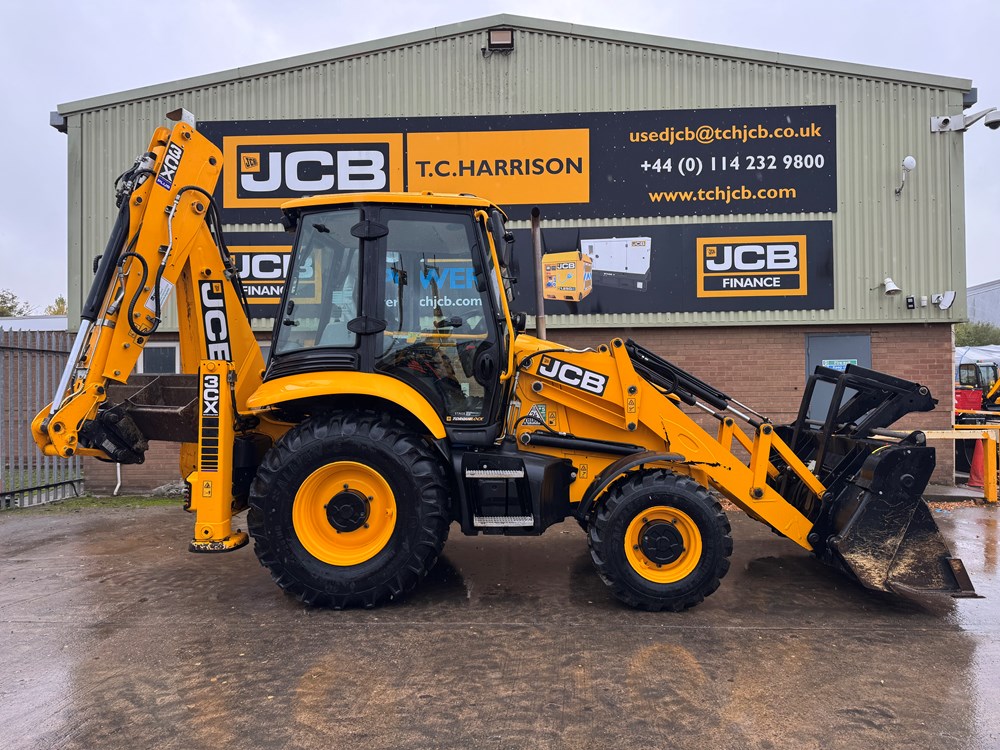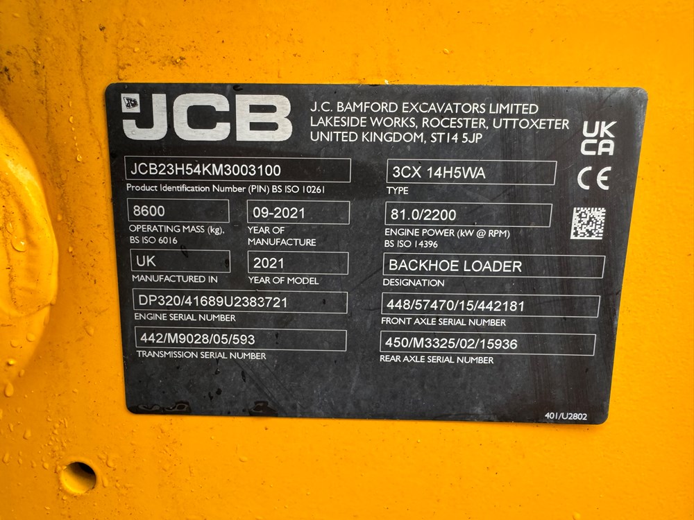 JCB 3CX PLUS AEC BACKHOE LOADER - 14' EXTENDING DIPPER, 81kW (109HP) STAGE 5 ENGINE, ADVANCED EASY CONTROLS, POWERSLIDE, HEAVY LIFT, POWERSHIFT + TL & LSD, 4WD/2WS, CAB WITH AIR CONDITIONING, HEATED CLOTH AIR SUSPENSION SEAT, HAMMER/BI-DIRECTIONAL PIPEWORK, BOOM END DAMPENING, 5/8 LOADER PIPEWORK, RTD & AUTO SRS, 2350mm, 1.0m3 DIRECT MOUNT 6-IN-1 FRONT BUCKET WITH PALLET FORKS & TOEPLATE, STABILISER STREETPADS, TELESCOPIC STEERING COLUMN, HYDRAULIC QUICK HITCH, 1 X USED BUCKET - LOCATION: TCH JCB LINCOLN