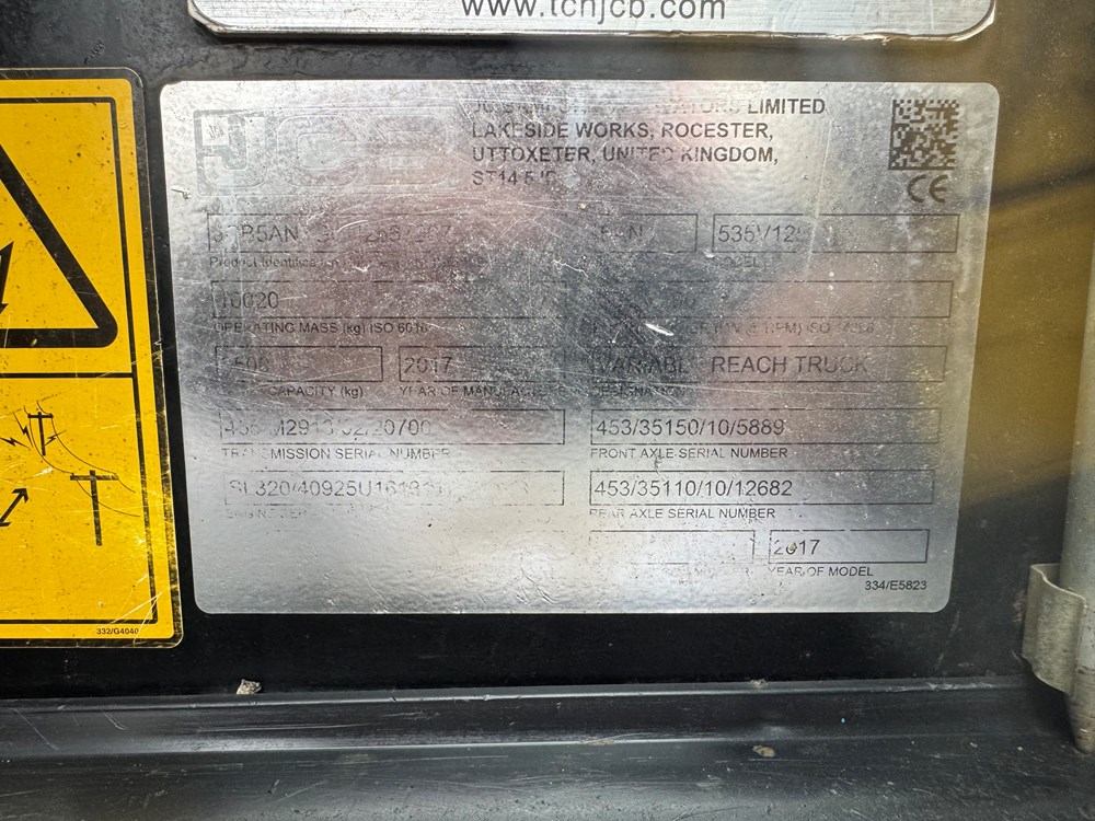 JCB 535V125 LOADALL - 55KW (74HP) ENGINE, SWAY, STABILISERS, MANUAL: 2 LEVER, 1 AUXILIARY, PLACING PATTERN, CAB WITH AIR CONDITIONING, FABRIC SUSPENSION SEAT, MANUAL Q-FIT CARRIAGE, AUTO STEER MODE ALIGNMENT, ROOF AND FRONT SCREEN GUARDS, PALLET FORKS, LOCATION: TCH JCB LINCOLN