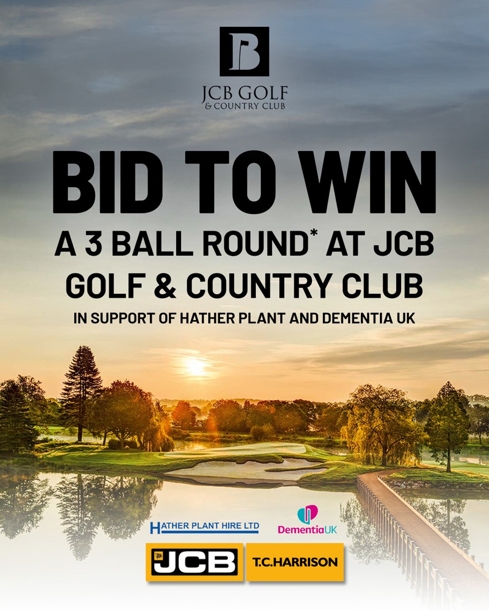 *** CONSIGNED TO TCH JCB AUCTION, START PRICE £2,000 - VISIT www.tchjcbauction.com NOW FOR MORE INFORMATION, TO REGISTER & BID, AUCTION ENDS MONDAY 19TH JANUARY 2026, NO BUYERS FEES, WHAT YOU BID IS WHAT YOU PAY, NO DEPOSIT REQUIRED, THE START PRICE IS THE RESERVE PRICE *** BID TO WIN A 3 BALL ROUND AT JCB GOLF & COUNTRY CLUB HOSTED BY A TCH JCB MEMBER - IN SUPPORT OF HATHER PLANT HIRE & DEMENTIA UK TO RAISE AS MUCH MONEY AS POSSIBLE FOR THIS WORTHWHILE CAUSE