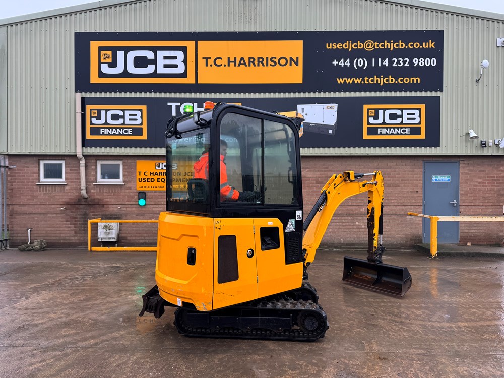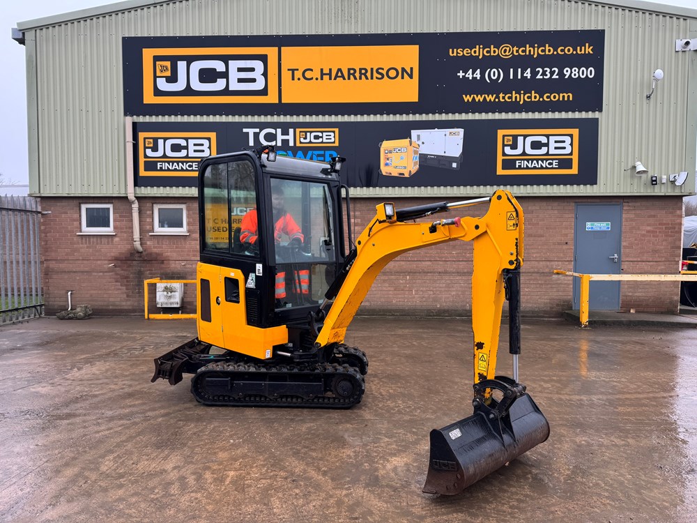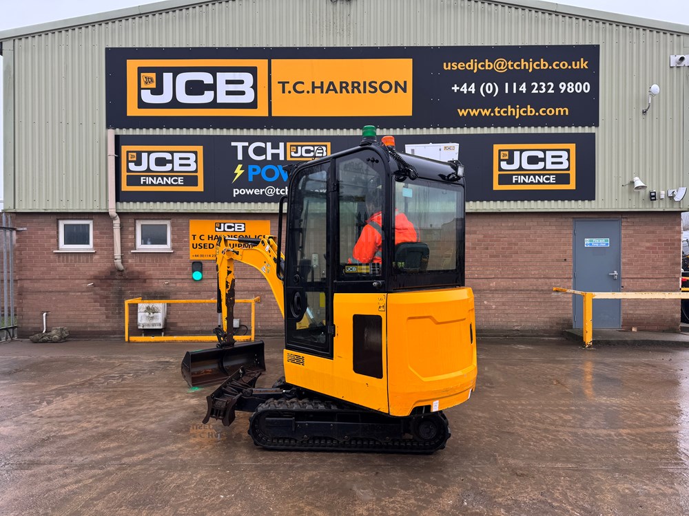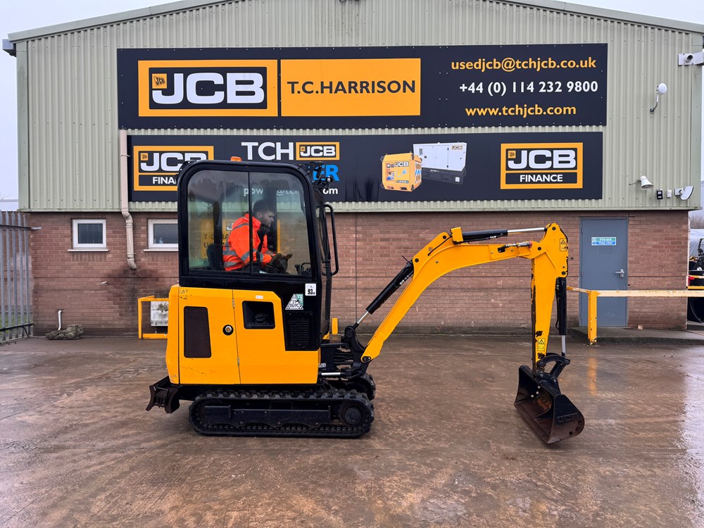 JCB 16C-1 MINI EXCAVATOR - CAB WITH HEATER, RUBBER TRACKS, ISO CONTROL PATTERN: HIGH FLOW; DOUBLE ACTING AUX, EXTENDING UNDERCARRIAGE, STATIC FABRIC SEAT, 1100MM DIPPER, STANDARD DOZER WITH SWING OUT EXTENSIONS, AUTO KICK DOWN TRACK MOTORS, 1 X USED BUCKET - LOCATION: TCH JCB LINCOLN