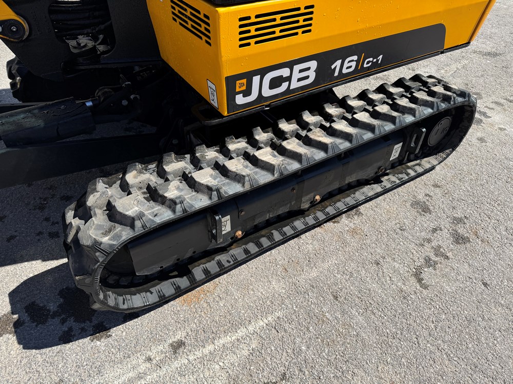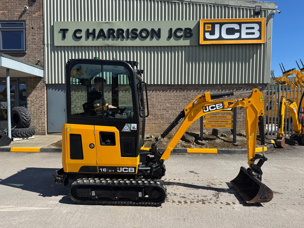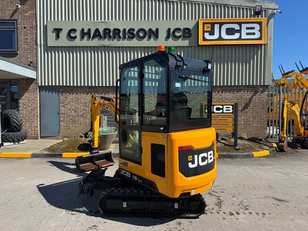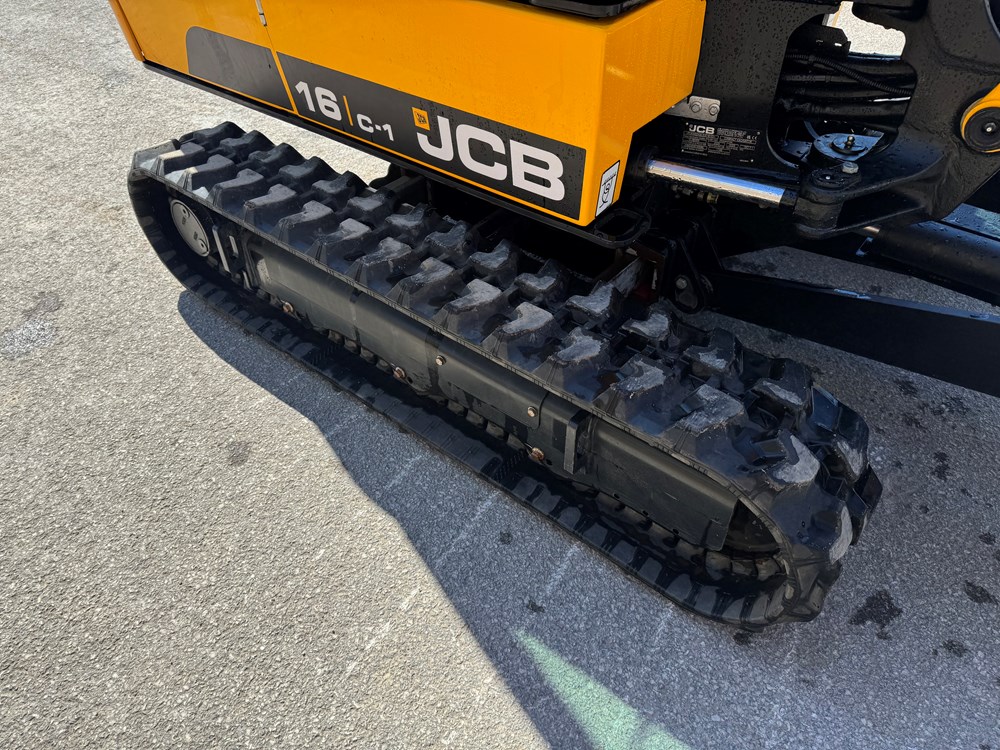 JCB 16C-1 MINI EXCAVATOR - CAB WITH HEATER, RUBBER TRACKS, ISO CONTROL PATTERN: HIGH FLOW; DOUBLE ACTING AUX, EXTENDING UNDERCARRIAGE, STATIC FABRIC SEAT, 1100MM DIPPER, STANDARD DOZER WITH SWING OUT EXTENSIONS, AUTO KICK DOWN TRACK MOTORS, MECHANICAL QUICK HITCH, 3 X USED BUCKETS, WARRANTY UNTIL 30.10.2028 OR 2000 HOURS - LOCATION: TCH JCB ALFRETON