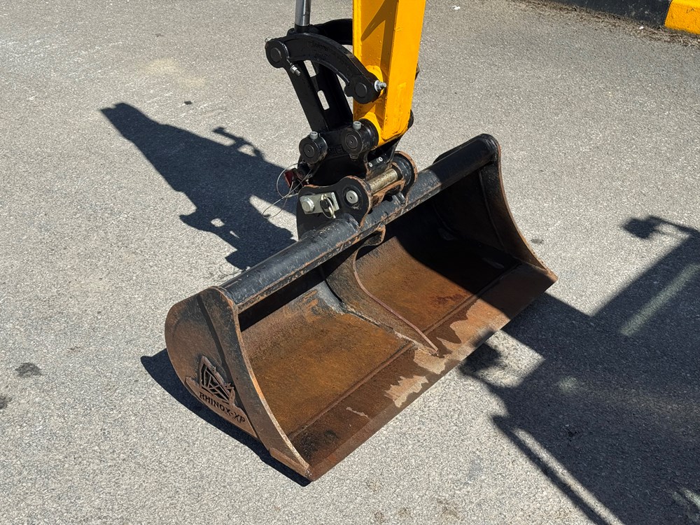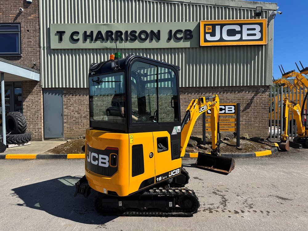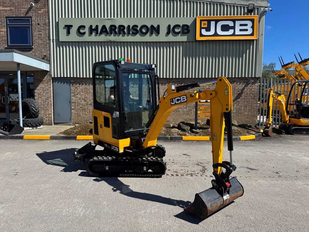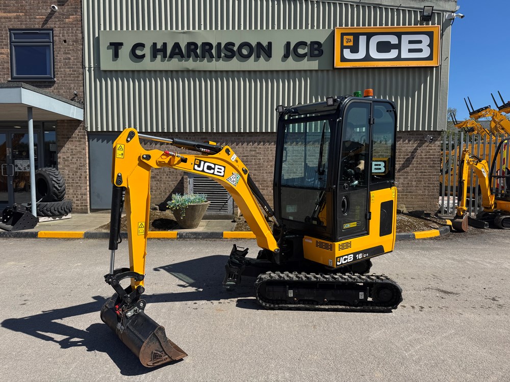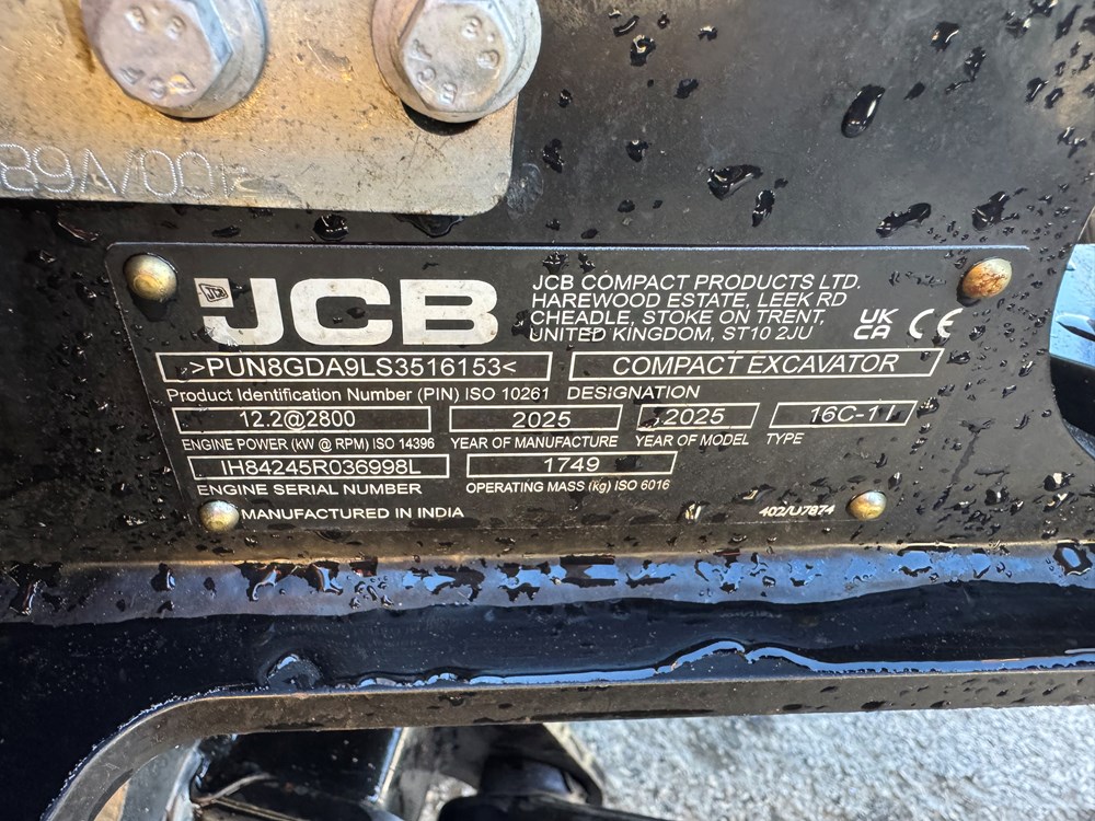 JCB 16C-1 MINI EXCAVATOR - CAB WITH HEATER, RUBBER TRACKS, ISO CONTROL PATTERN: HIGH FLOW; DOUBLE ACTING AUX, EXTENDING UNDERCARRIAGE, STATIC FABRIC SEAT, 1100MM DIPPER, STANDARD DOZER WITH SWING OUT EXTENSIONS, AUTO KICK DOWN TRACK MOTORS, MECHANICAL QUICK HITCH, 3 X USED BUCKETS, WARRANTY UNTIL 30.10.2028 OR 2000 HOURS - LOCATION: TCH JCB ALFRETON