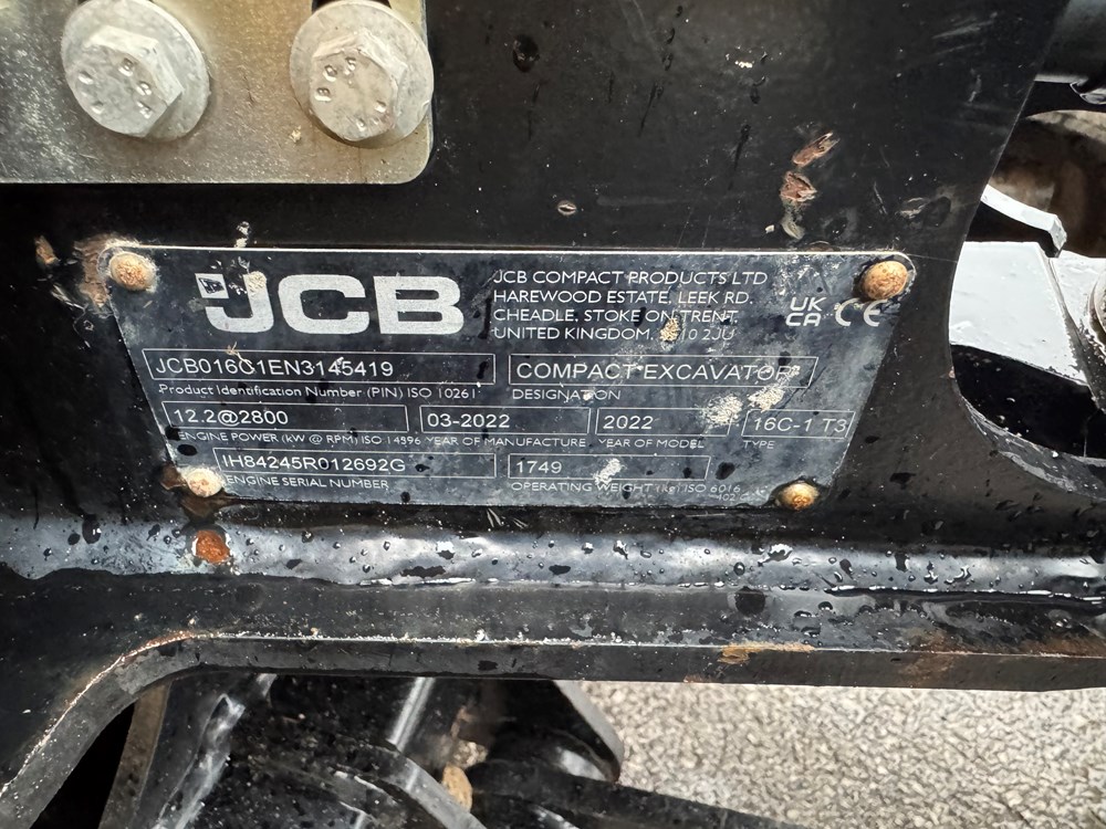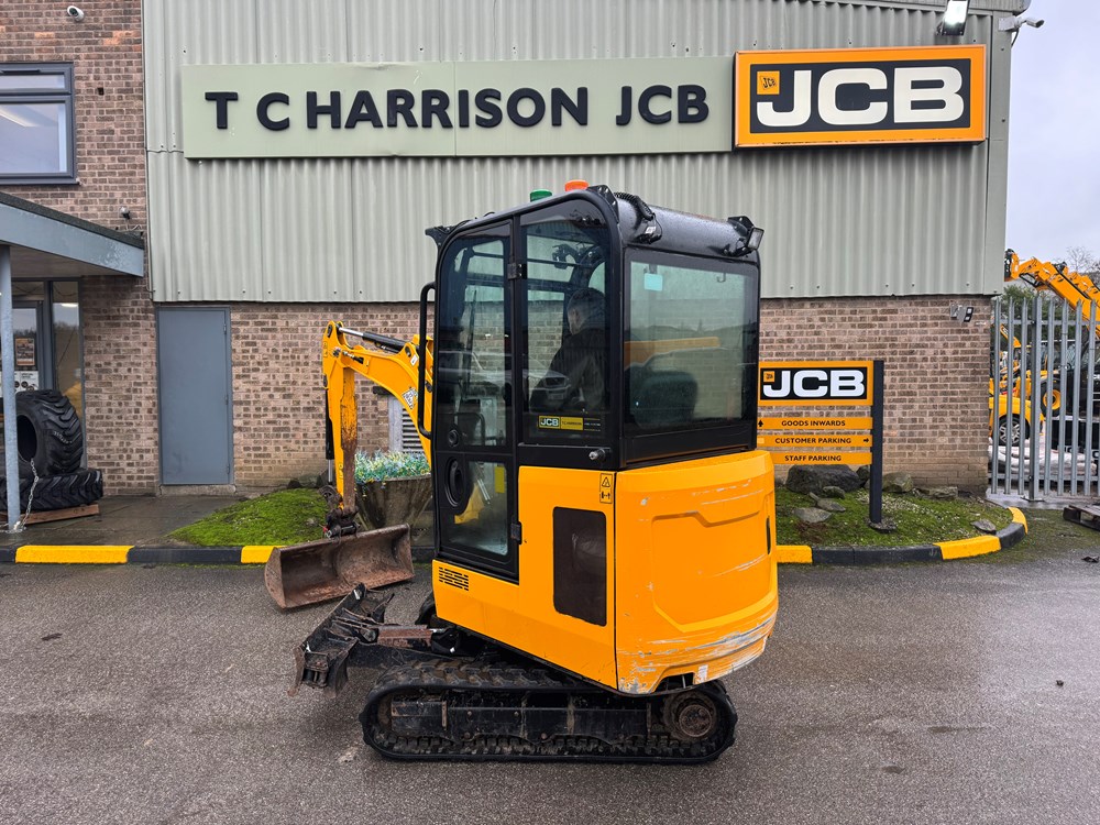 JCB 16C-1 MINI EXCAVATOR - CAB WITH HEATER, RUBBER TRACKS, ISO CONTROL PATTERN: HIGH FLOW; DOUBLE ACTING AUX, EXTENDING UNDERCARRIAGE, STATIC FABRIC SEAT, 1100MM DIPPER, STANDARD DOZER WITH SWING OUT EXTENSIONS, AUTO KICK DOWN TRACK MOTORS, MECHANICAL QUICK HITCH, 3 X USED BUCKETS, F2530 CERTIFIED UNTIL 19.01.27 - LOCATION: TCH JCB ALFRETON