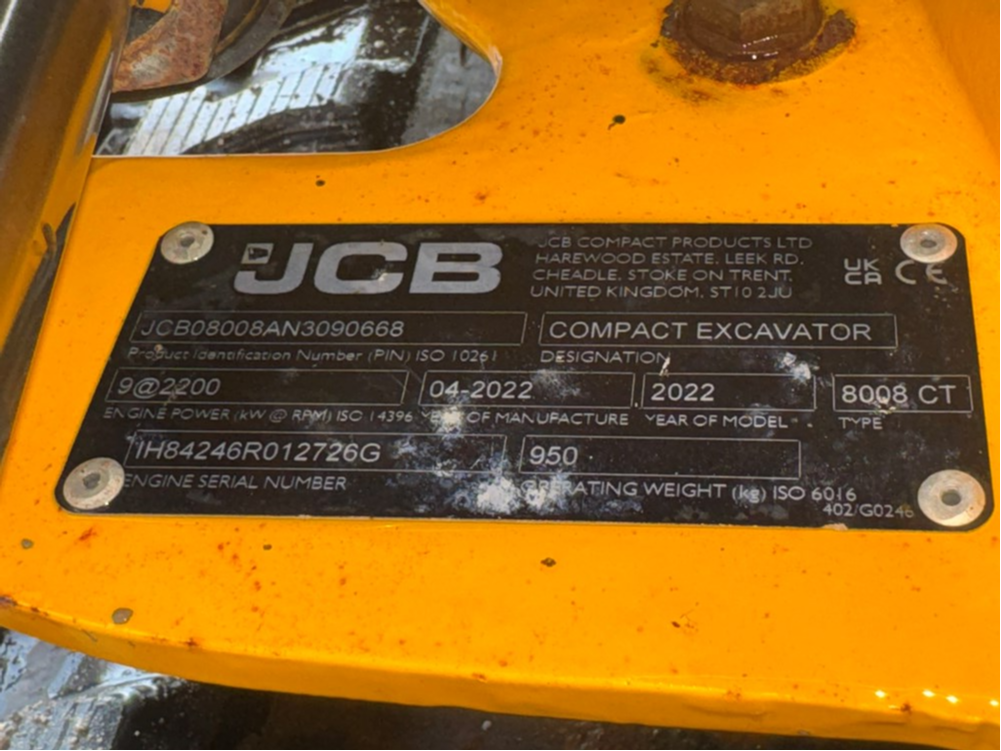 *** CONSIGNED TO TCH JCB AUCTION, START PRICE £6,500 - BUY IT NOW AVAILABLE AT £8,000 - VISIT www.tchjcbauction.com NOW FOR MORE INFORMATION, TO REGISTER & BID, AUCTION ENDS MONDAY 23RD MARCH 2026, NO BUYERS FEES, WHAT YOU BID IS WHAT YOU PAY, NO DEPOSIT REQUIRED, THE START PRICE IS THE RESERVE PRICE *** JCB 8008 MICRO EXCAVATOR - FRONT MOUNTED TOPS FRAME, RUBBER TRACKS, ISO PATTERN CONTROLS, HIGH BACK SEAT, 887MM DIPPER, GREASE TENSIONER FOR TRACKS, SINGLE ACTING AUXILIARIES, 3 X USED BUCKETS - LOCATION:TCH JCB ALFRETON
