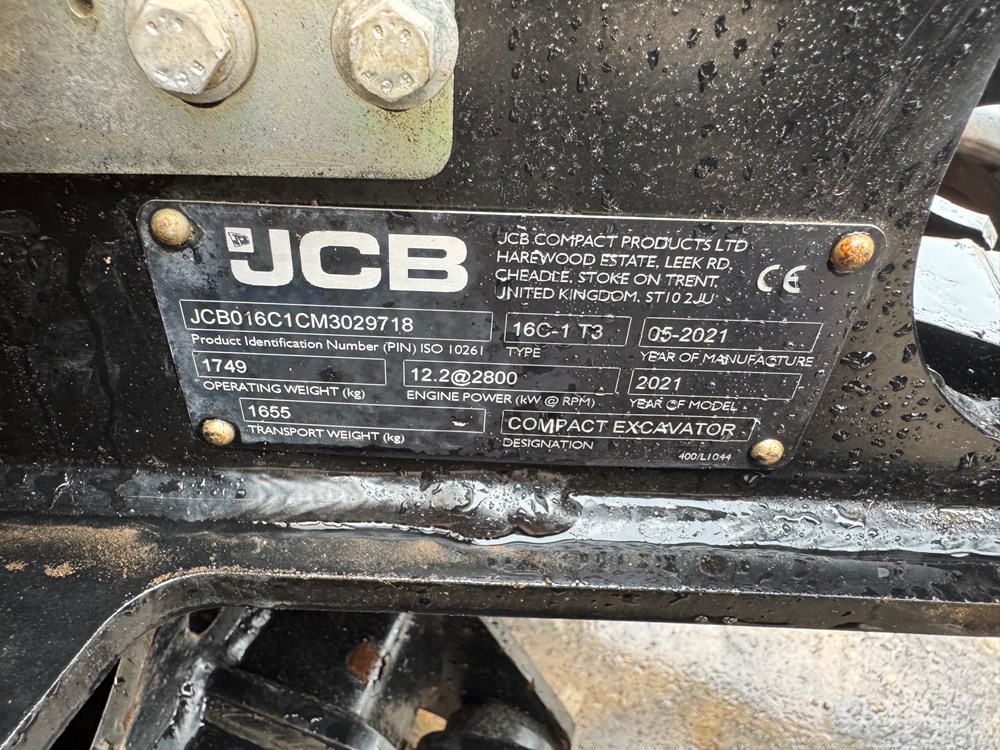 *** CONSIGNED TO TCH JCB AUCTION, START PRICE £10,500 - VISIT www.tchjcbauction.com NOW FOR MORE INFORMATION, TO REGISTER & BID, AUCTION ENDS MONDAY 23RD MARCH 2026, NO BUYERS FEES, WHAT YOU BID IS WHAT YOU PAY, NO DEPOSIT REQUIRED, THE START PRICE IS THE RESERVE PRICE *** JCB 16C-1 MINI EXCAVATOR - CAB WITH HEATER, RUBBER TRACKS, ISO CONTROL PATTERN: HIGH FLOW; DOUBLE ACTING AUX, EXTENDING UNDERCARRIAGE, STATIC FABRIC SEAT, 1100MM DIPPER, STANDARD DOZER WITH SWING OUT EXTENSIONS, AUTO KICK DOWN TRACK MOTORS, 3 X USED BUCKETS - LOCATION: TCH JCB LINCOLN