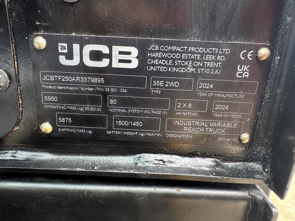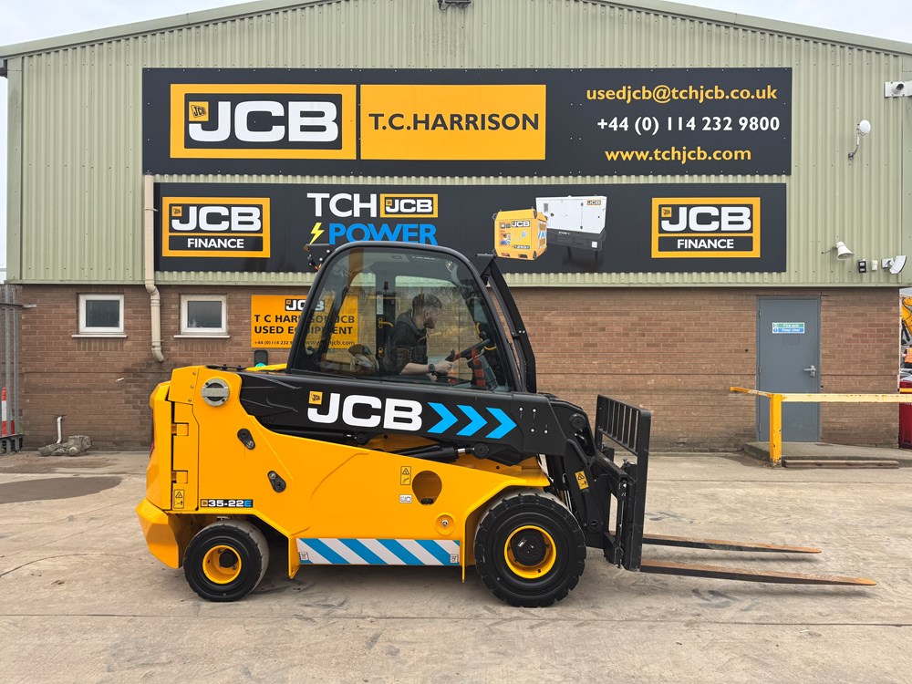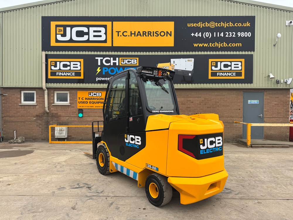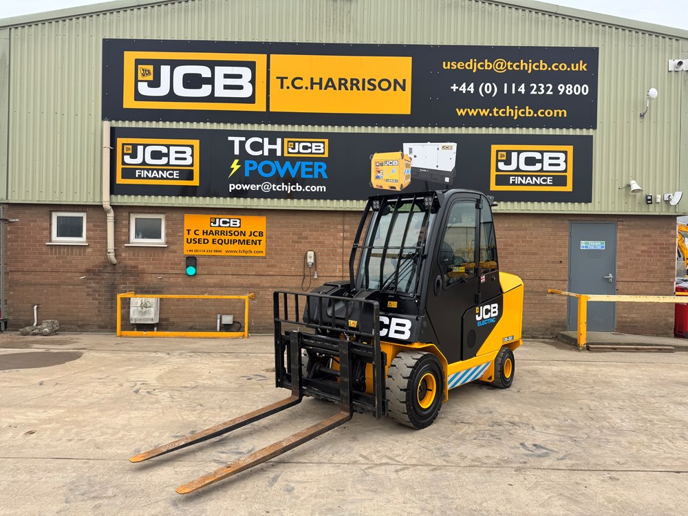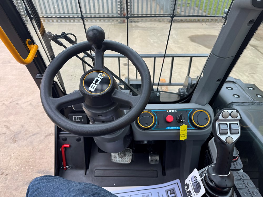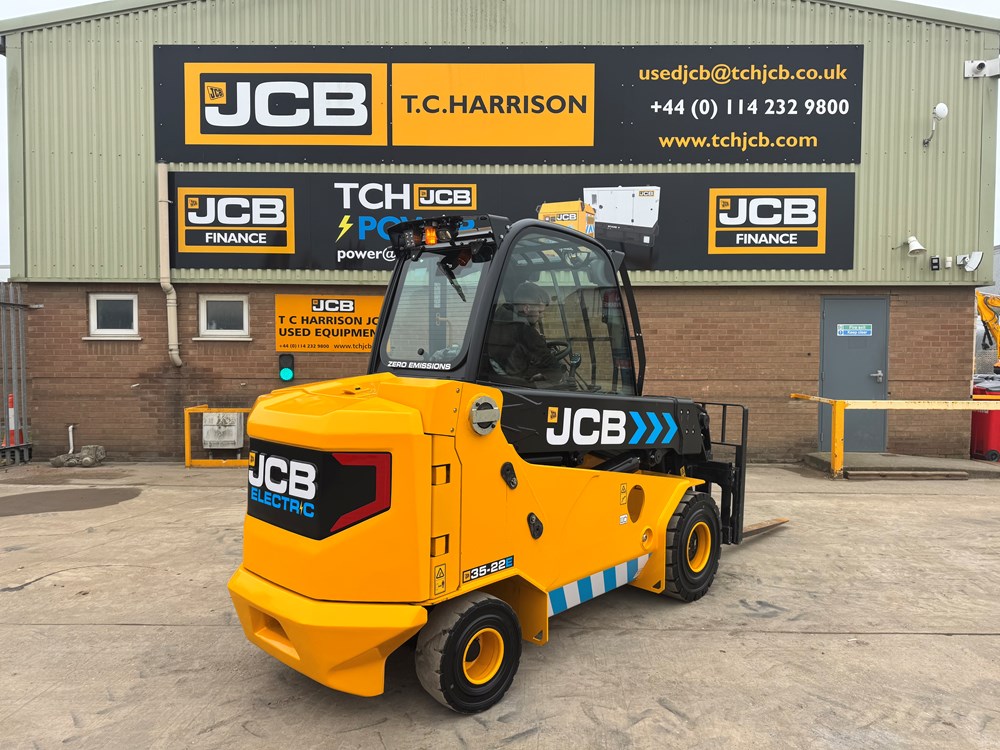 JCB TLT35-22E-2WD ELECTRIC TELETRUK - COMMAND PLUS LUX FULL CAB, 1 X AUX (28 LTRS PER MINUTE), 1500MM PALLET FORKS, SINGLE LEVER CONTROLS & SMART HYDRAULICS, FRONT SCREEN GUARD, REAR BLUESPOT LIGHT, CLASS 3 CARRIAGE WITH BOLT ON SIDESHIFT, LOW HEIGHT LOAD GUARD, WHEEL MOTOR COVER, TRIATHLON BATTERY WITH CHARGER - LOCATION: TCH JCB LINCOLN